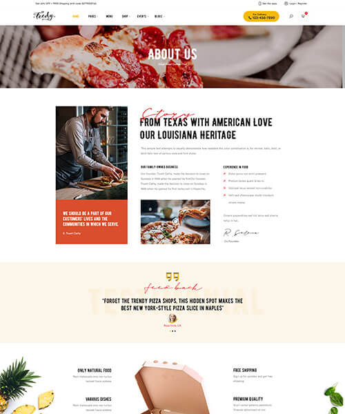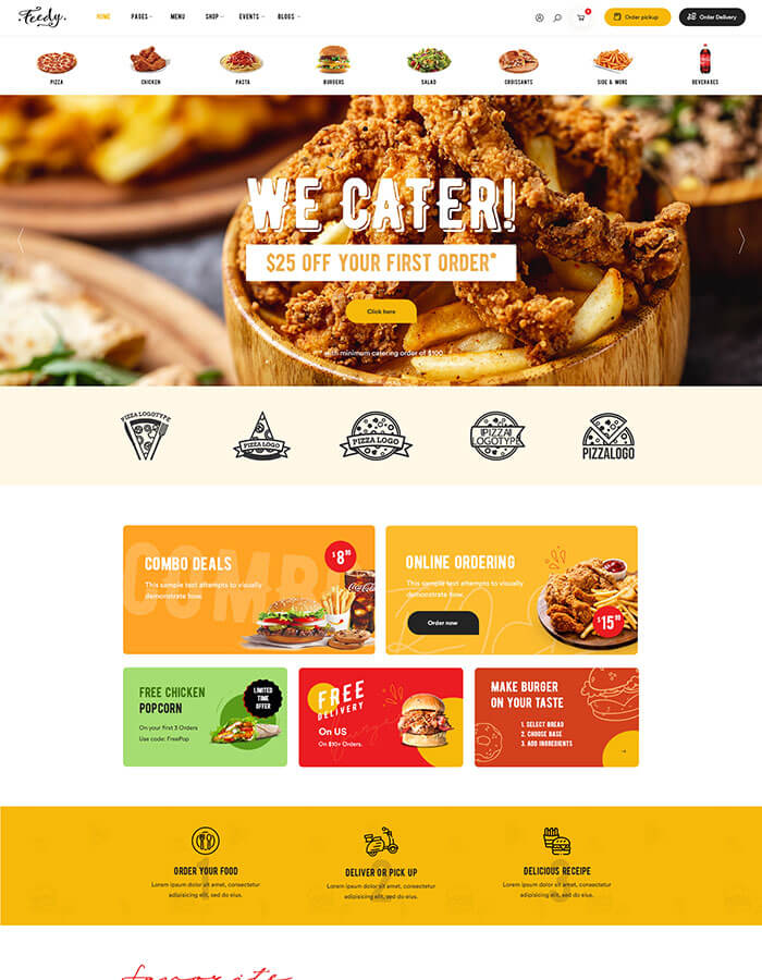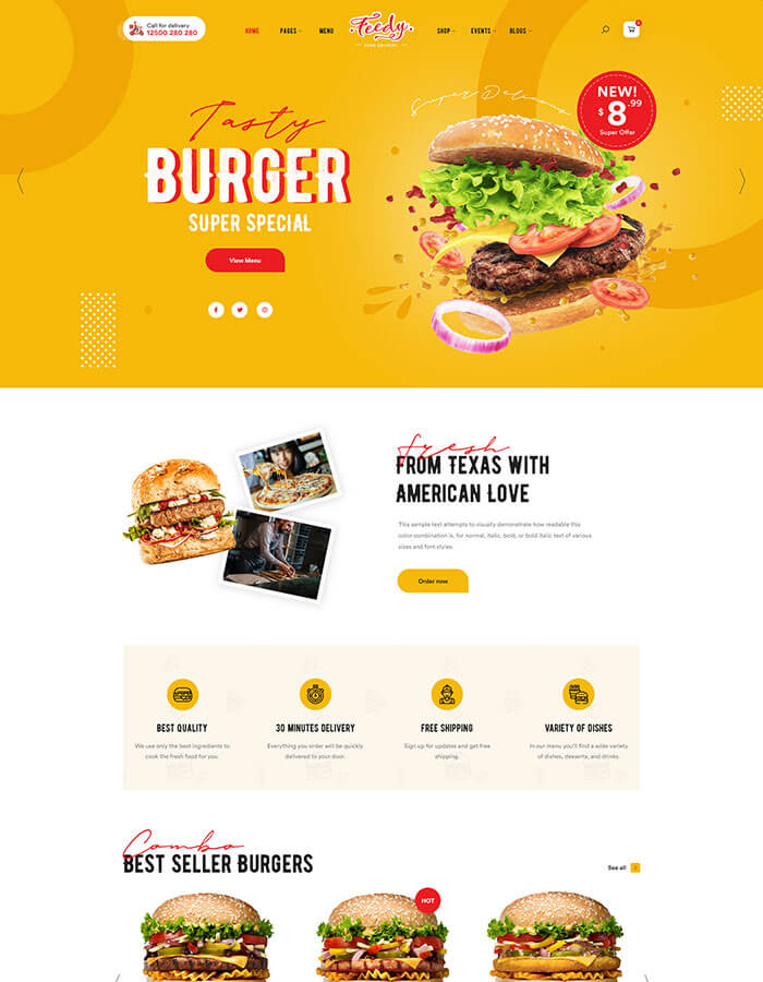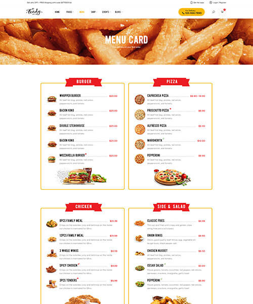 No need for third-party plugins or additional expenses. Feedy design and develope for fast food industry and other online delivery related business site with ready-made designed page templates and intuitive page builder.